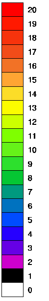 c---------------------------------------------------------------------- cFILE: colourtable c---------------------------------------------------------------------- c cThis file contains a list of red-green-blue transmission ccolour triplets which are used by ausmap. A total of 100 ccolours may be listed, with index values from 0 to 99, cwhile the 100th index is preserved for the (blue) Bureau logo. cIndex 0 and 1 should be left as is, these are defining white cand black respectively. c cThe format of the file is, c cncol credindex greenindex blueindex< This is index 0 c ...... c ...... credindex greenindex blueindex< This is index ncol-1 c cwhere, c credindex is the red transmissivity (range 0 to 1, 0 no red), cgreenindex is the green transmissivity (range 0 to 1, 0 no green), cblueindex is the blue transmissivity (range 0 to 1, 0 no blue), c cFor example, c c1.00 1.00 1.00 is white, c1.00 0.00 0.00 is a full red, c1.00 0.00 1.00 is a full purple, etc. c c---------------------------------------------------------------------- 22 1.00 1.00 1.00 0.00 0.00 0.00 0.80 0.00 0.80 0.40 0.00 0.90 0.15 0.00 1.00 0.00 0.30 1.00 0.00 0.45 0.75 0.00 0.60 0.50 0.02 0.78 0.20 0.18 0.88 0.18 0.40 0.95 0.10 0.50 1.00 0.00 0.80 1.00 0.00 0.99 0.99 0.00 1.00 0.00 0.00 1.00 0.65 0.20 0.95 0.45 0.15 0.95 0.30 0.10 0.97 0.20 0.05 1.00 0.10 0.00 1.00 0.00 0.00 1.00 1.00 1.00-V this option causes ausmap to produce a vector plot. Ausmap will expect the input file (defaulting to tape1) to contain both zonal and meridional vector components in concatenated units of the standard ausmap write.